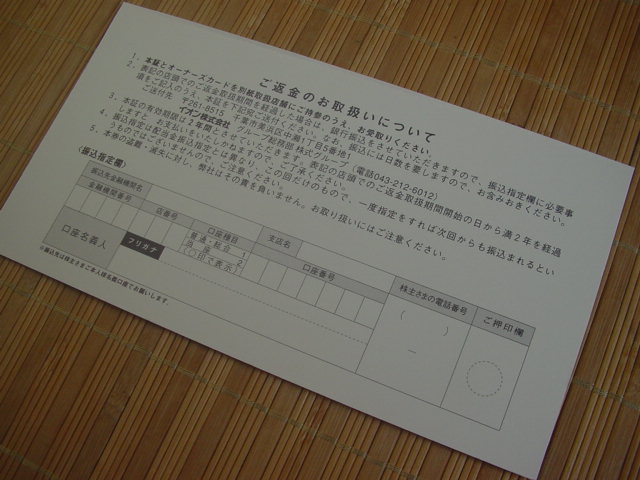 | 解説 | 今回の株主優待は、「株主ご優待返金引換証」です。